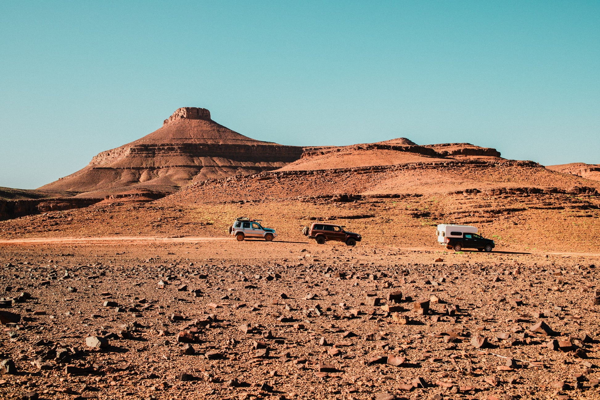 Four days of pure off road follow along the old Paris Dakar rally tracks. Stony plains, dry riverbeds, shifting sands and wide open horizons form the core of this crossing. Iriki Lake appears like a white mirage between earth and sky and the rock formations of Cobra Pass reveal Morocco's raw and powerful landscapes.